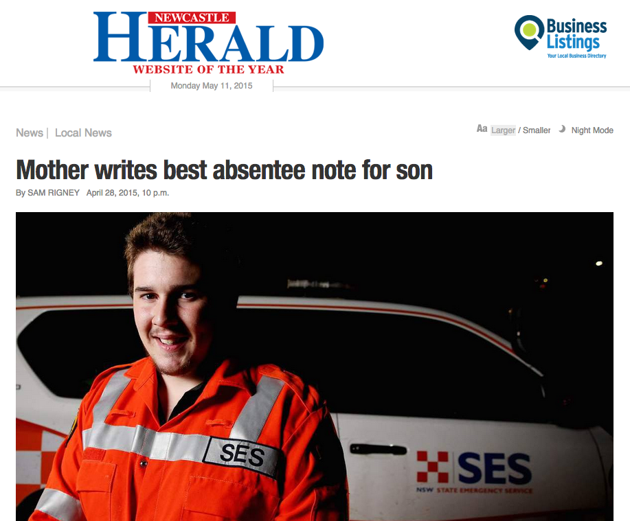 The Newcastle Herald also picked up the story and ran an article about it.